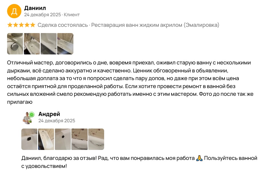 - Ваша ванна станет как новая всего за 2-3 часа.